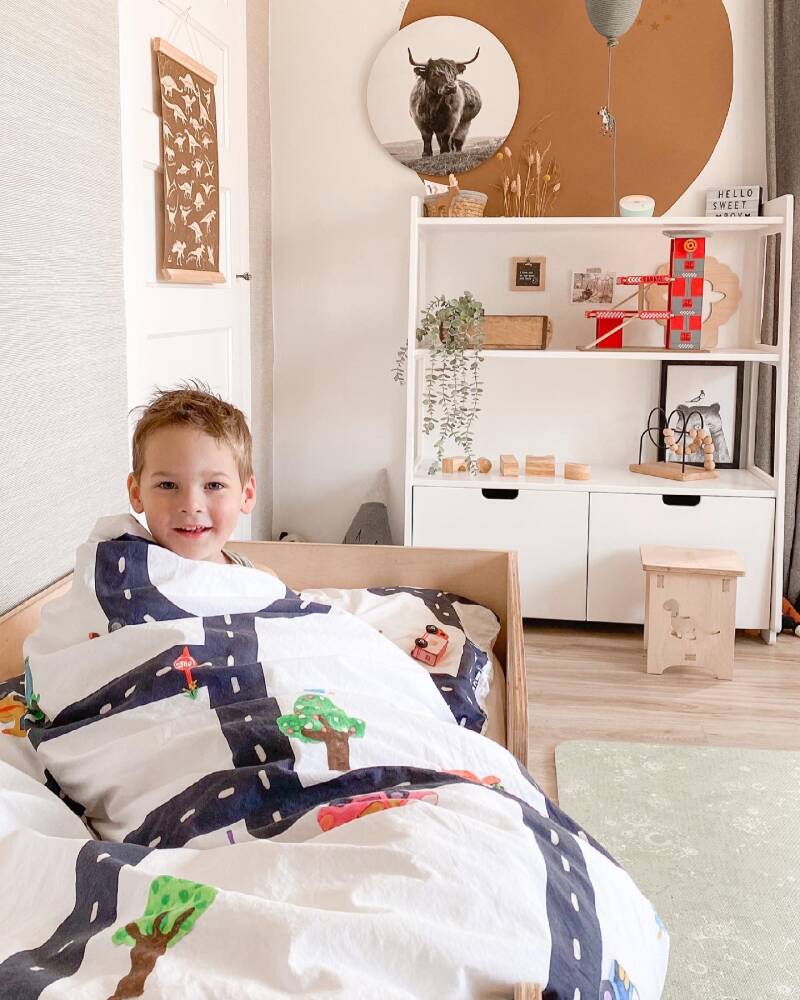 Wat vooral heel bijzonder is aan dit beddengoed, is dat het ook leuk is om te spelen! De eerste paar dagen mocht Connor lekker een autootje meenemen in bed zodat hij nog even over de weggetjes kon rijden voordat hij ging slapen. Te schattig toch 🥰